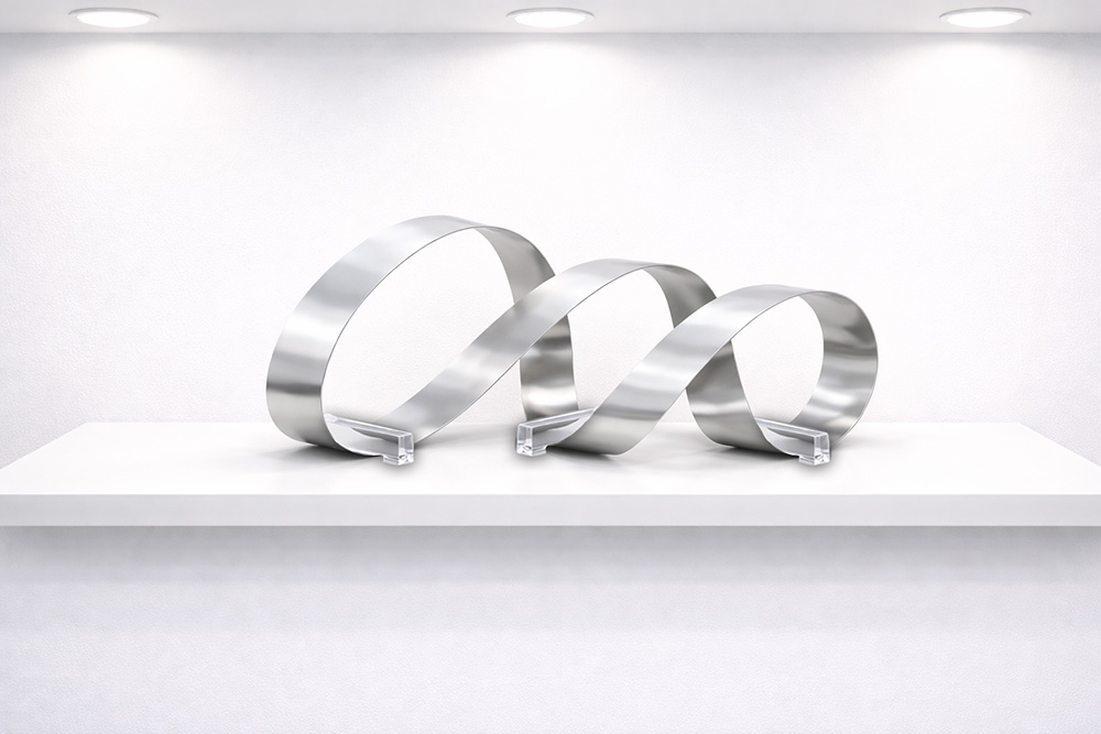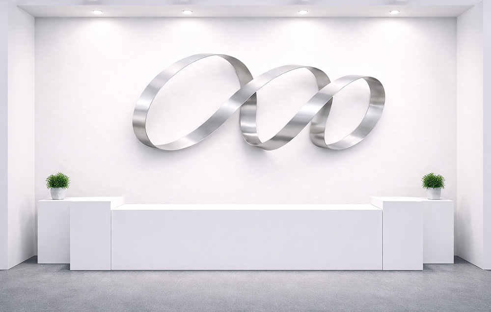 今挙げたような工業的用途がスチールベルトの一般的な使い方だったのですが、そんな固定観念の殻を突き破り、このスチールベルトをアートとして昇華してくださったお客様がいらっしゃるんです!