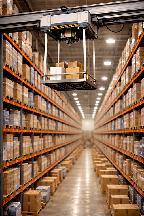 倉庫などに設置された自動昇降機においてもディムコのステンレスベルトは使用されています。