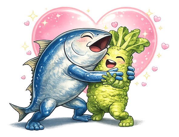 海を泳ぐマグロのお刺身に山で育った山葵がマッチすることを知った時のあの喜びと似ているのかもしれません。